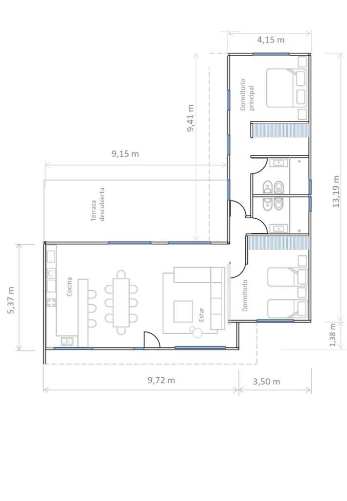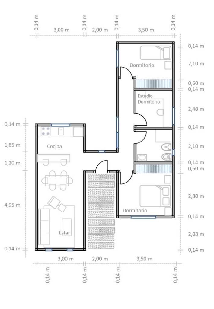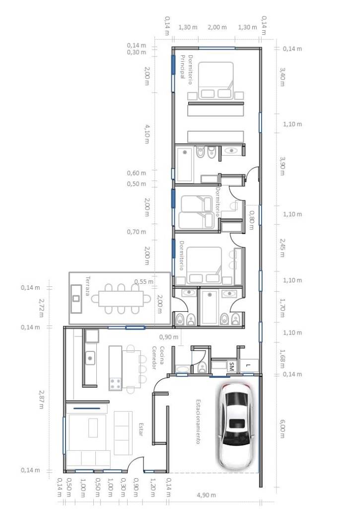 Modelo 98 m²: «Confort y espacio para toda la familia. Tres dormitorios con máxima eficiencia SIP. US$ 98.000.»